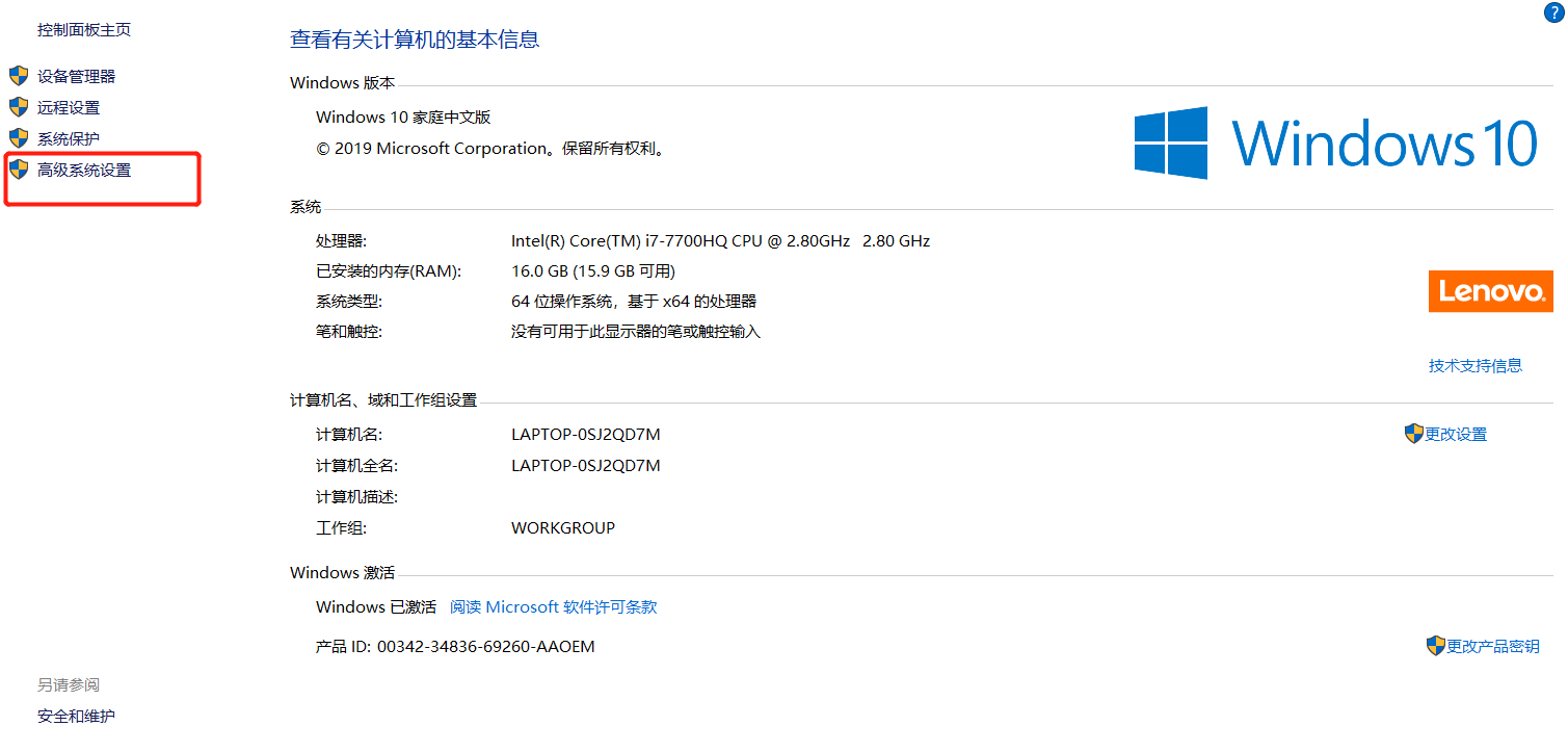 复制Maven所在的路径 ,点击此电脑右键选择属性->高级系统设置->环境变量