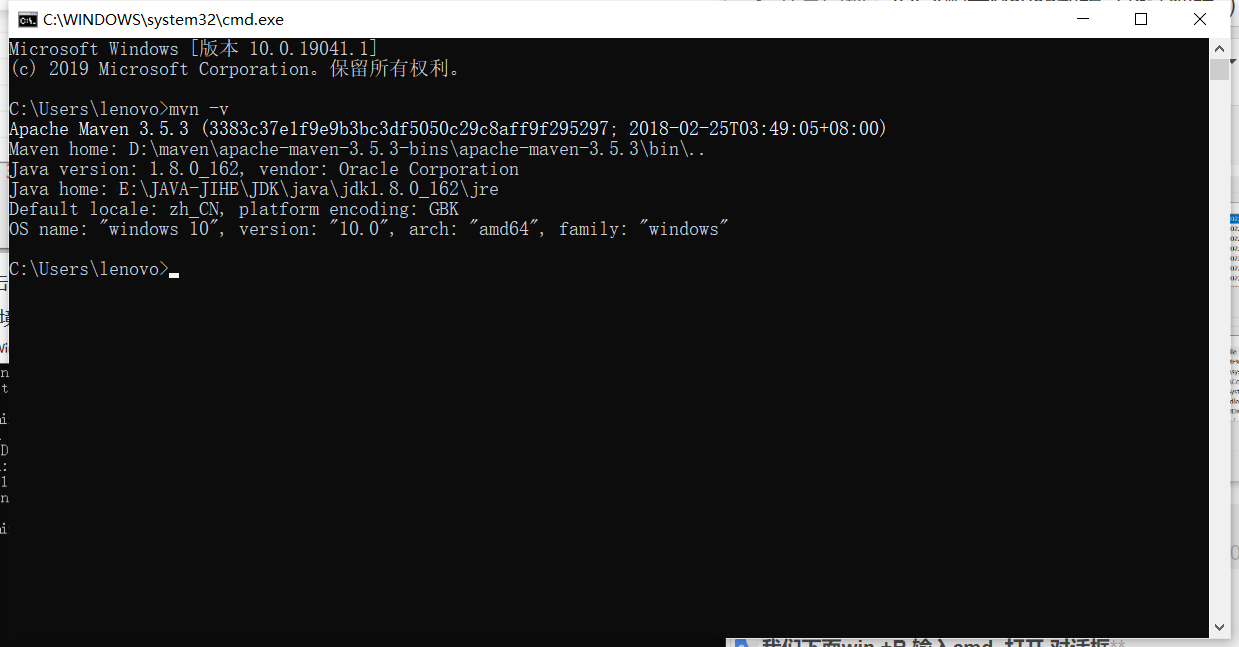 我们下面win +R 输入cmd 打开 对话框 输入mvn -v (或者 mvn -version)即可查看版本以及是否安装成功;