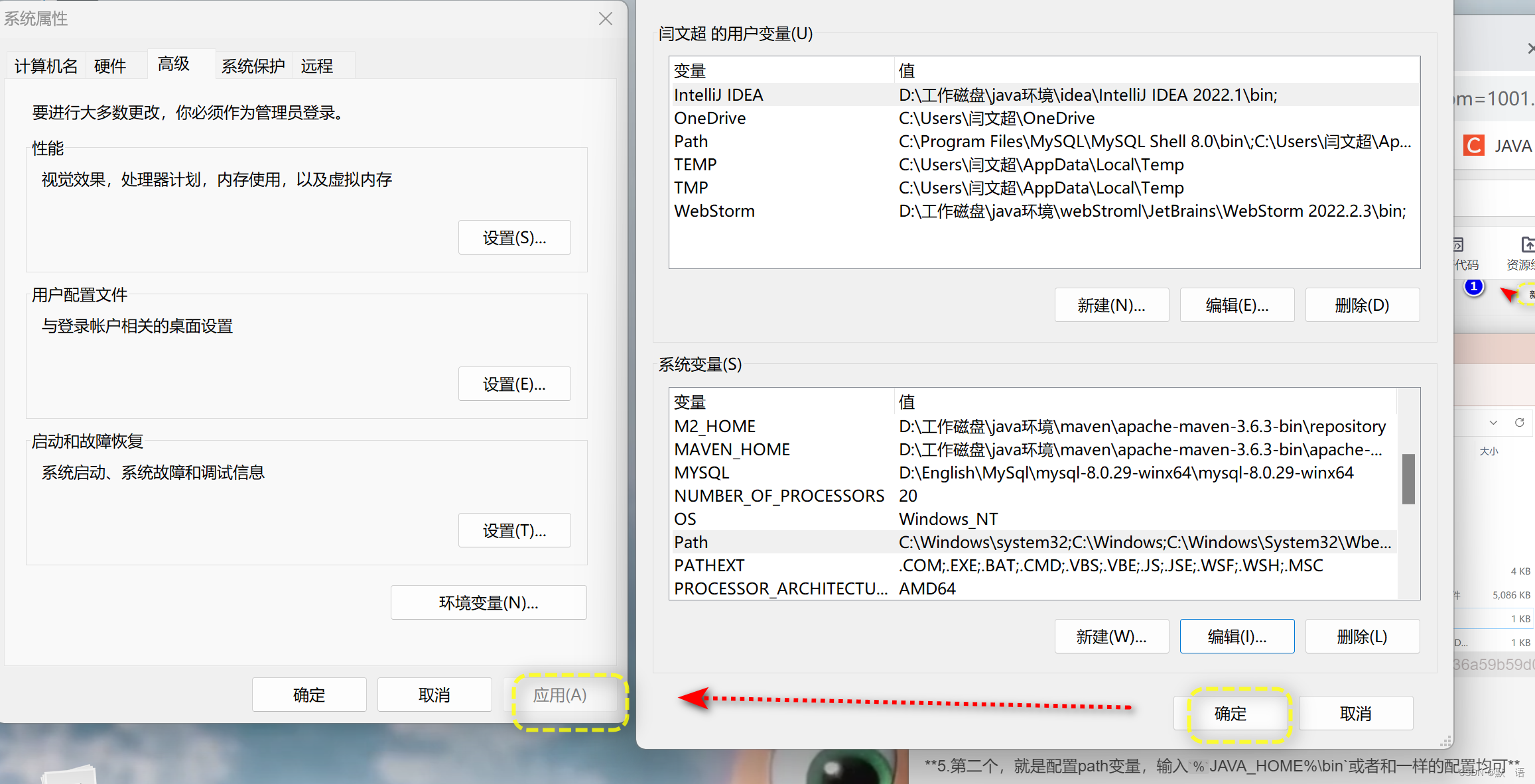 6.设置好之后选择“确定”,选择"应用",“确认”,环境配置完成,然后进行后面的验证。