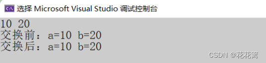 此时两个值是完成了交换,我们可以看到实现成Swap2的⽅式,顺利完成了任务,这⾥调⽤Swap2函数的时候是将变量的地址传递给了函数,这种函数调⽤⽅式叫:传址调⽤。