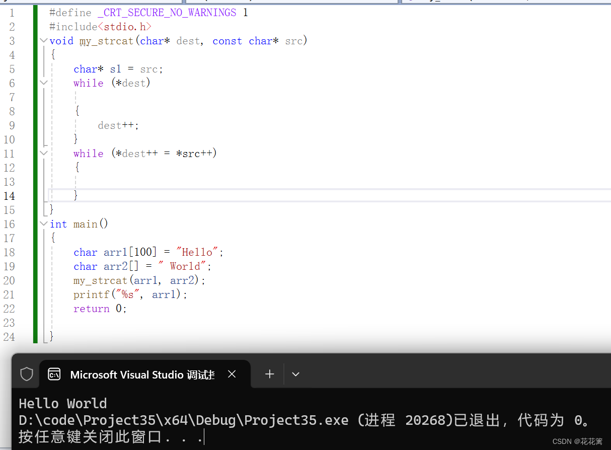 源字符串必须以 '\0' 结束。 • ⽬标字符串中也得有 \0 ,否则没办法知道追加从哪⾥开始。 • ⽬标空间必须有⾜够的⼤,能容纳下源字符串的内容。 • ⽬标空间必须可修改。