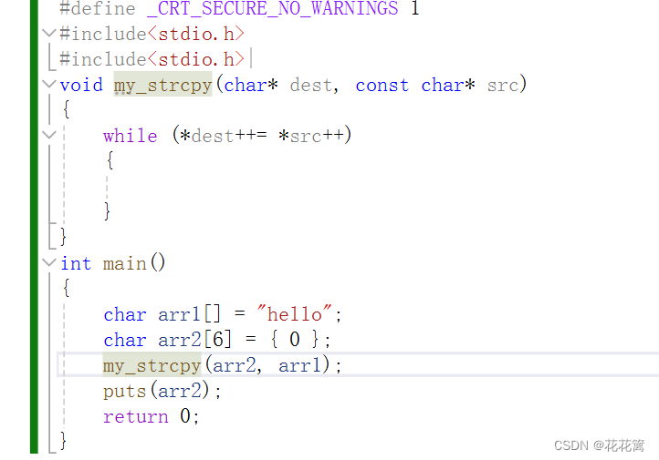 源字符串必须以 '\0' 结束。 • 会将源字符串中的 '\0' 拷⻉到⽬标空间。 • ⽬标空间必须⾜够⼤,以确保能存放源字符串。 • ⽬标空间必须可修改。