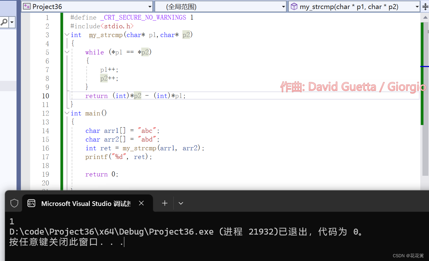 符串的⽐较匹配不包含 \0 字符,以 \0 作为结束标志