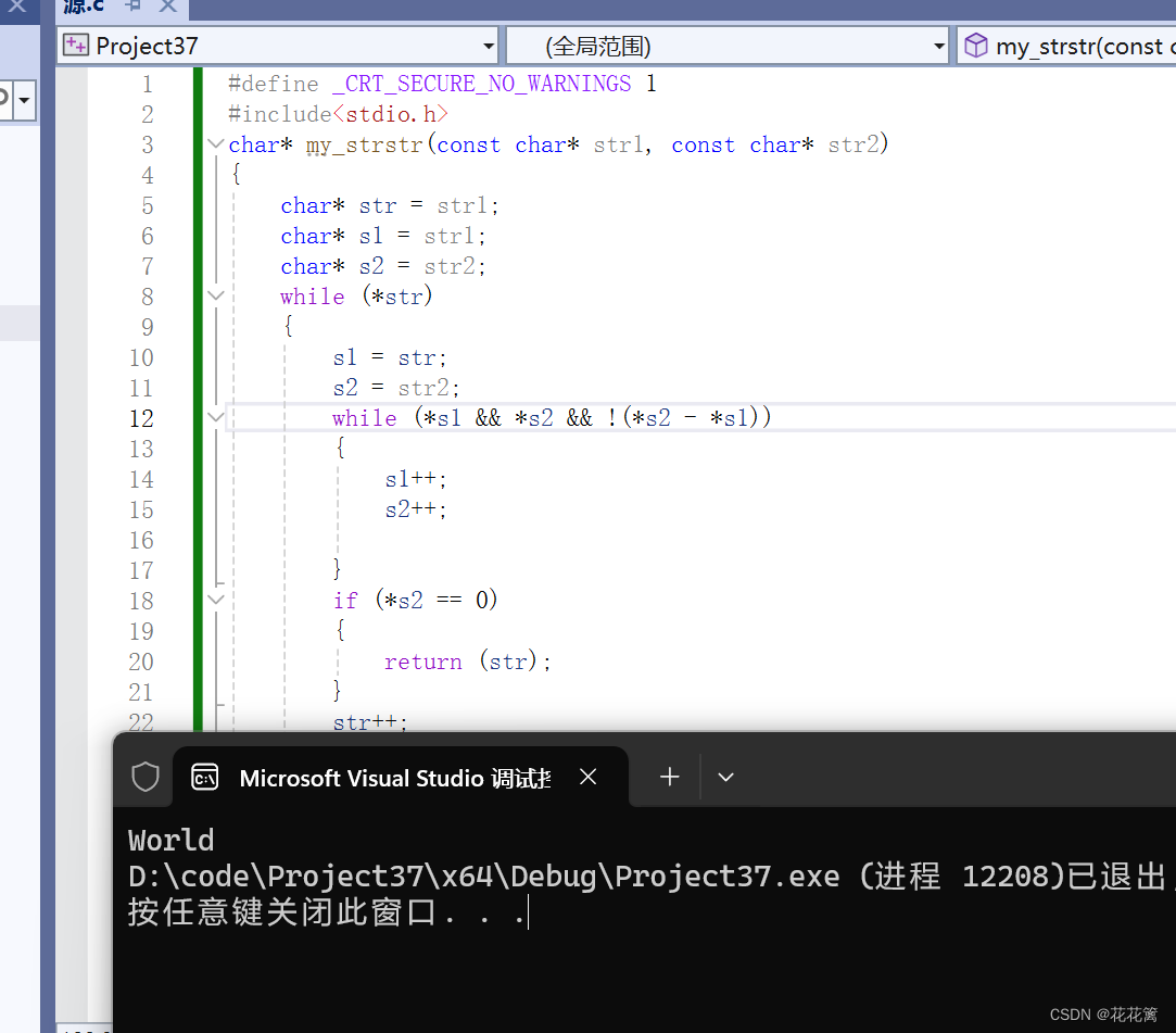 函数返回字符串str2在字符串str1中第⼀次出现的位置