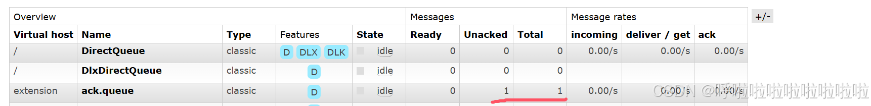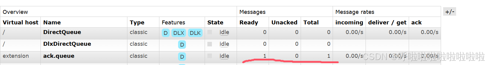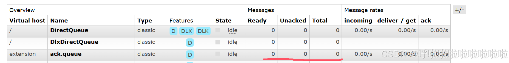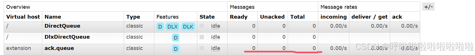 可以看到,消费者处理失败,但是消息已经从RabbitMQ中移除.