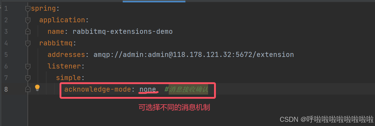 acknowledge-mode: manual#消息接收确认1)消费者 正常消费情况下