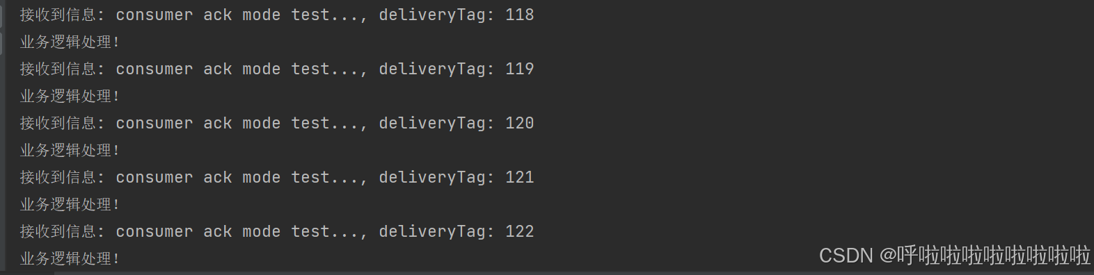 1)deliveryTag : 消息的唯⼀标识,它是⼀个单调递增的64位的⻓整型值. deliveryTag 是每个通道 (Channel)独⽴维护的,所以在每个通道上都是唯⼀的.当消费者确认(ack)⼀条消息时,必须使⽤对应的通道上进⾏确认.