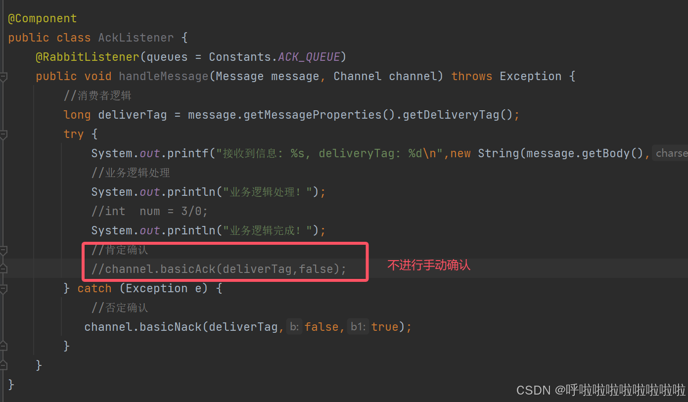 @RabbitListener(queues = Constants.ACK_QUEUE)