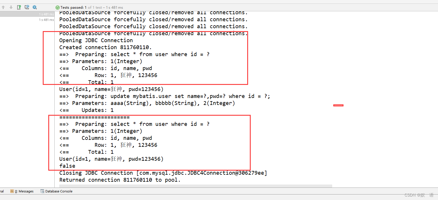 小结:一级缓存默认是开启的,只在一次SqlSession中有效,也就是拿到连接到关闭连接这个区间段!