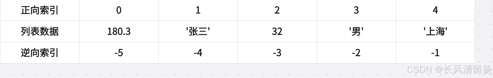 print(my_list[::-1]) # 输出: ['g', 'f', 'e', 'd', 'c', 'b', 'a']负数索引允许你从列表的末尾开始访问元素。