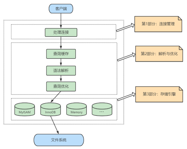 MySQL的内部核心模块主要包括以下几个部分,各自承担着不同的作用,让我们根据下图来分析一下: