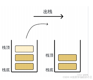有入栈肯定就会有出栈,对于栈的出栈,其实就是顺序表的尾删操作,因为栈的元素只能从栈顶出,栈底是不可以出元素的,可以类比下图进行记忆: