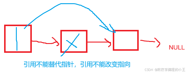 }• 比如在链表等数据结构,就只能用指针,因为引用无法改变指向(但是在java中就只使用引用,其引用就可以改变指向)