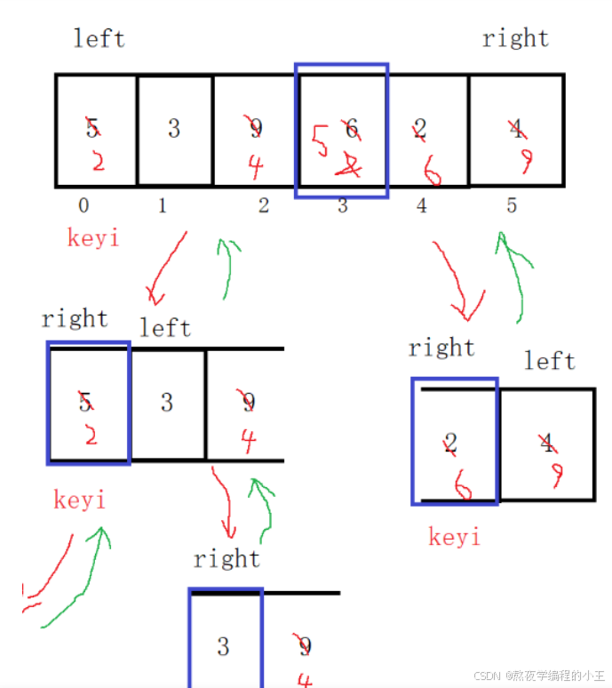 。left:从左往右找比基准值大的数据 right:从右往左找比基准值小的数据