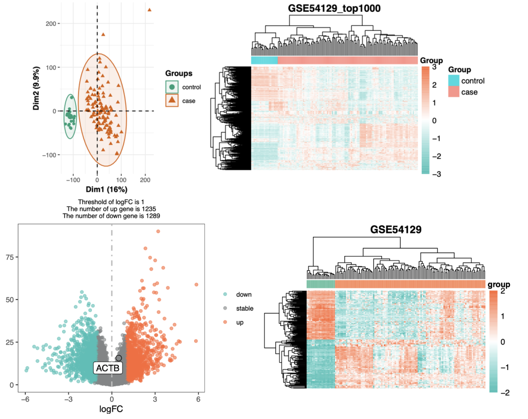 我们这里拿GSE54129作为案例,是很清晰的两分组(癌症和癌旁):