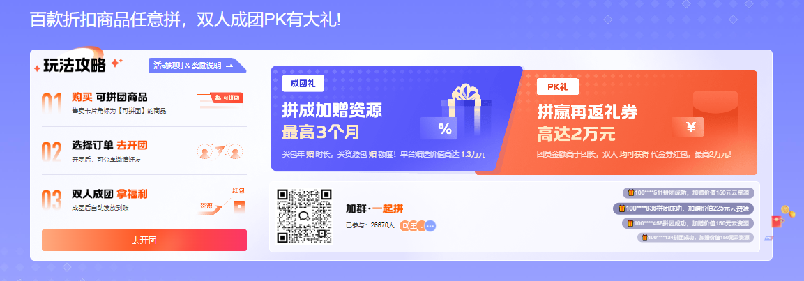 除了拼团优惠外,腾讯云还可能推出其他形式的优惠活动,如满减、赠品等。这些活动可以与拼团优惠叠加使用,进一步降低您的购买成本。因此,在购买过程中要留意各种优惠信息,尽可能多地享受优惠。