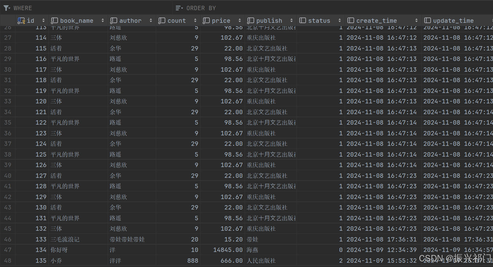 删除图书分为 逻辑删除(update): 从逻辑上进行删除,数据并没有真实删除 物理删除(delete语句): 数据真实删除。 但数据并没有真实清空,只是数据库上看不到了。 硬件存储上还是存在的 删除并归档(操作交为复杂):insert into... select....语句 1.删除(delete or update) 2.归档(把已经删除的数据存储下来)