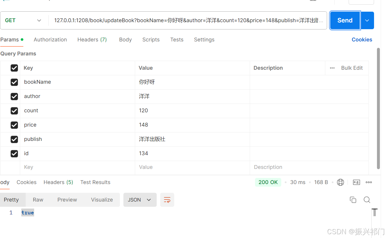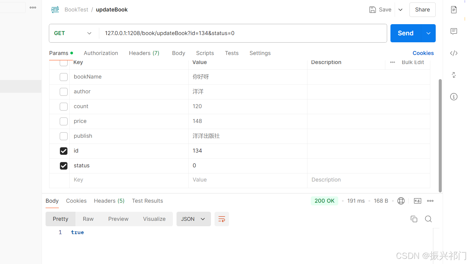 [请求] /book/updateBook Content-Type: application/x-www-form-urlencoded; charset=UTF-8 [参数] id=1&status=0 [响应] true / false