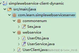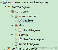 其中Sex,UserDto,UserService同服务端的代码,注意这里的实体类的包名是有限制的必须和服务端中的targetNamespace属性值一样,否则会报错,导入maven依赖: