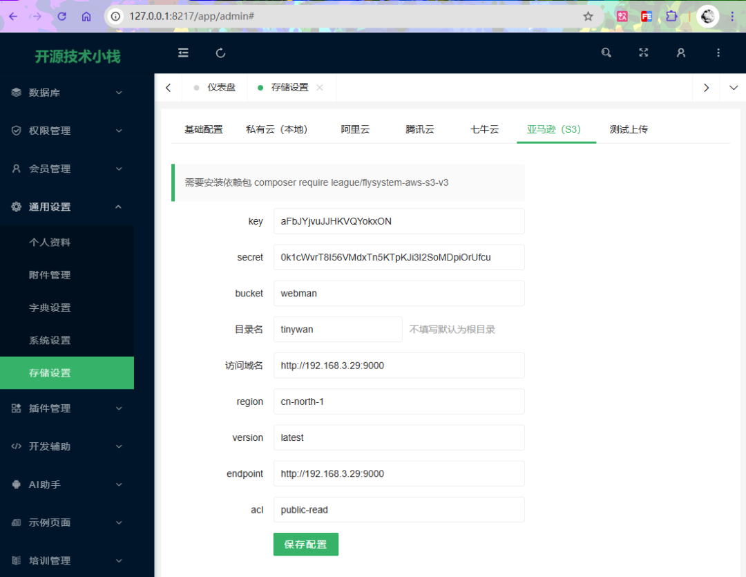 基于webman开发的一个开源免费管理后台webman-admin使用。通过云存储插件进行测试上传文件到MinIO服务端。