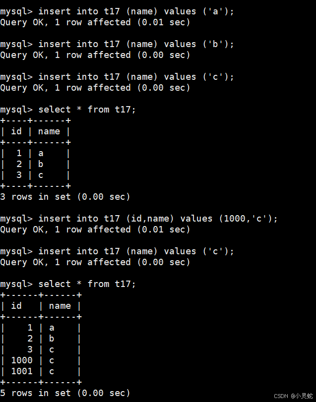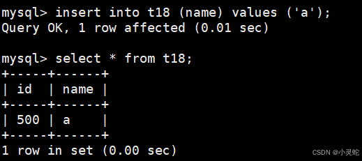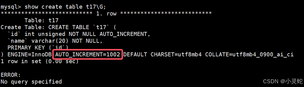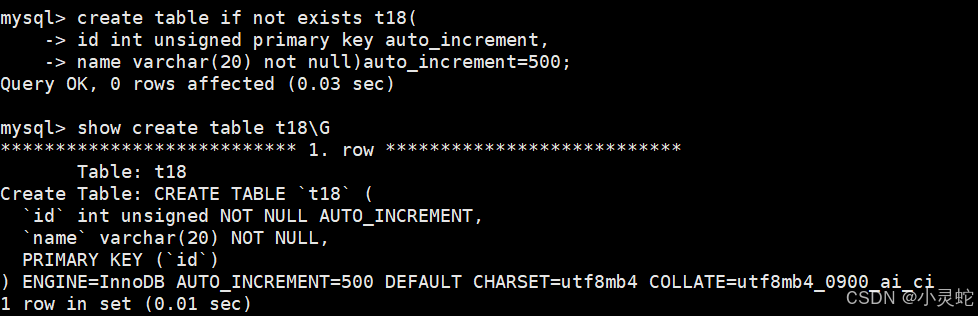 那是不是对于每个空表,插入没有指定的值的时候都是从1开始呢?其实我们可以在创建表的时候就指定:
