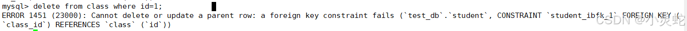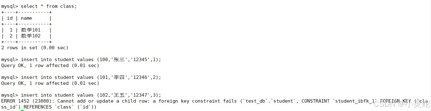 这样插入一个并不属于class表的班级编号的时候,就会报错。