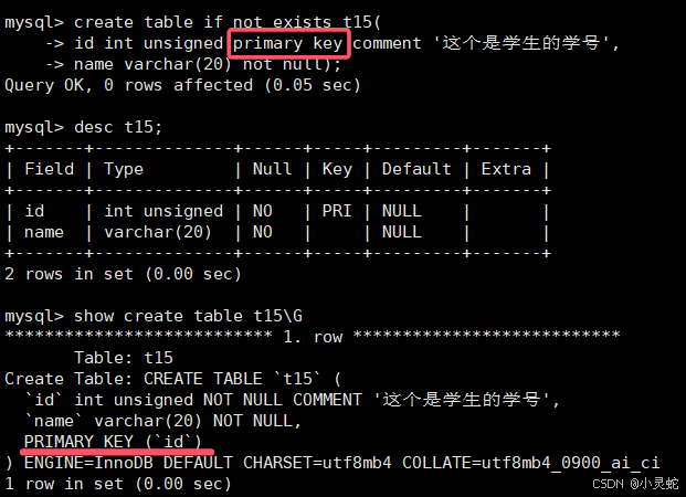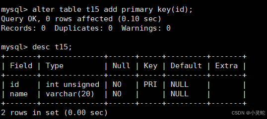 上面描述的是建表时就在相应数据类型后面表明主键,我们还可以在建表之后再添加主键。