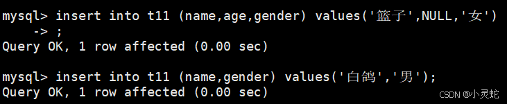 如果我们没有明确指定一列要插入,用的是default。如果建表中,对应列默认没有设置default,无法直接插入。