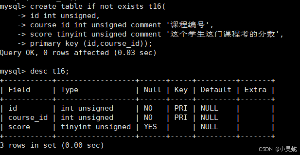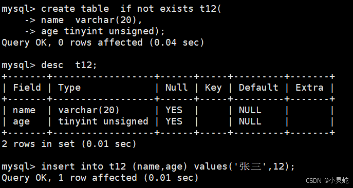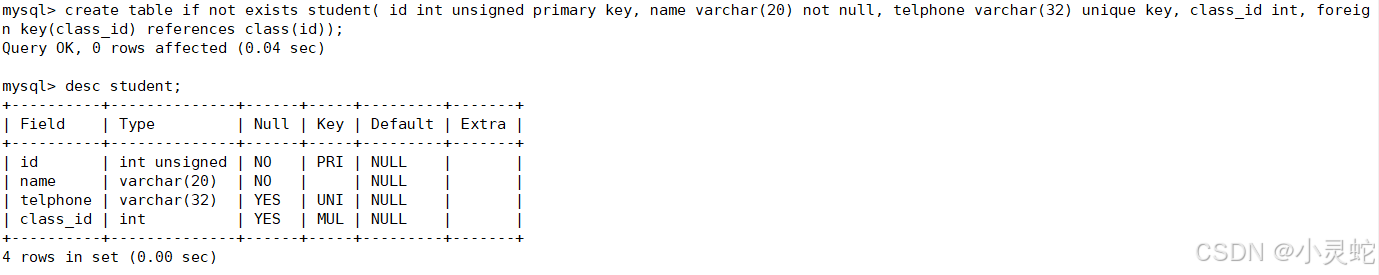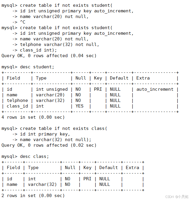 1 row in set (0.00 sec)案例:创建一个班级表,包含班级名和班级所在的教室。