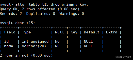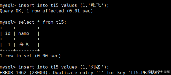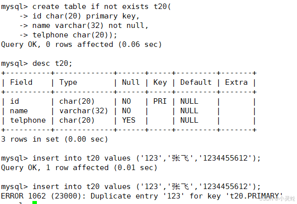 并且建表之后添加主键需要保证在表中需要设置主键的那列元素不能冲突。