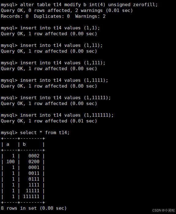 可以看到,如果插入的数的位数大于设置的int后面的数,那么正常插入就行。如果插入的数的位数小于设置的int后面的数,那么就得补0。