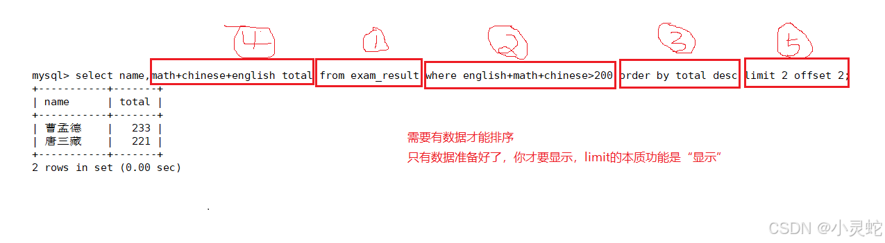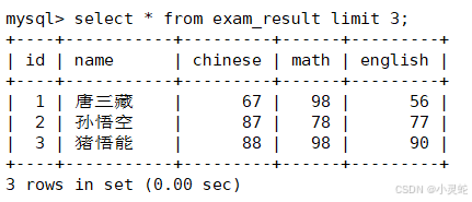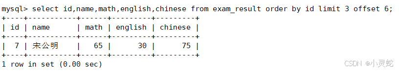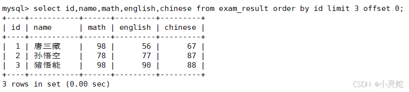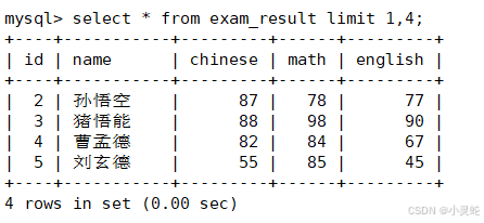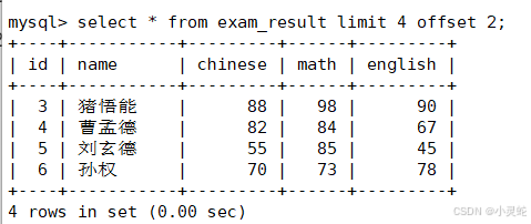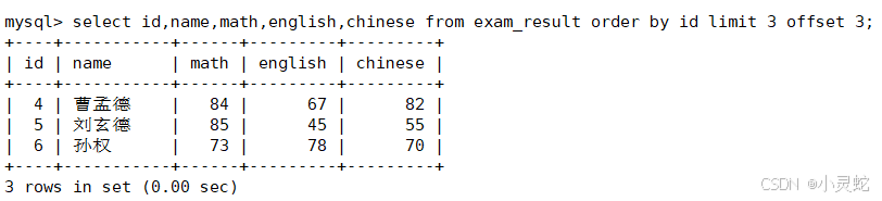 -- 从 s 开始,筛选 n 条结果,比第二种用法更明确,建议使用