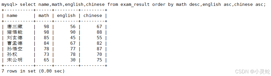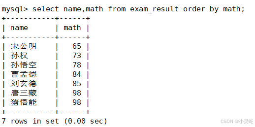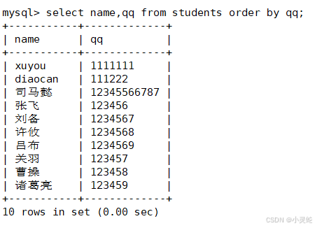 ORDER BY column [ASC|DESC], [...]; 注意:没有 ORDER BY 子句的查询,返回的顺序是未定义的,永远不要依赖这个顺序。