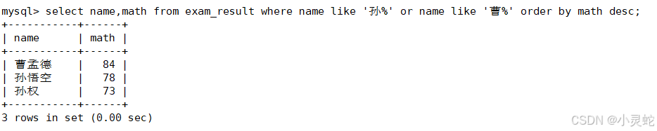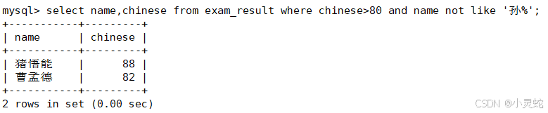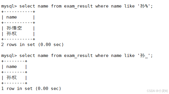 LIKE | 模糊匹配。% 表示任意多个(包括 0 个)任意字符;_ 表示任意一个字符 |