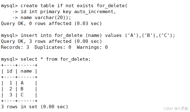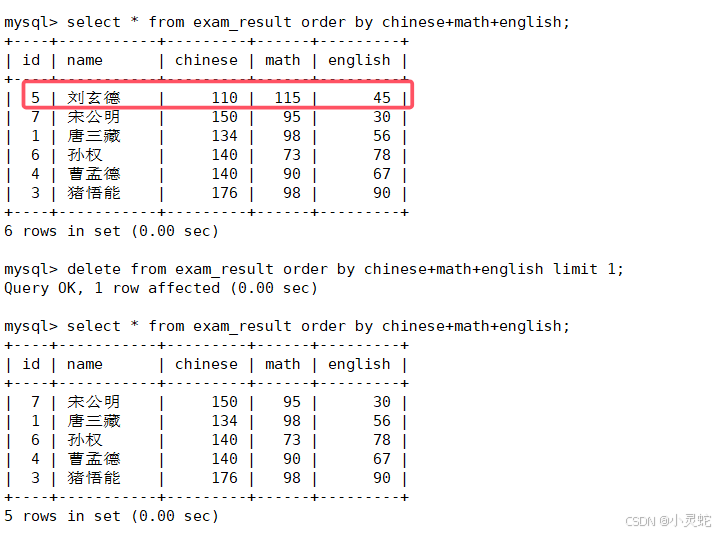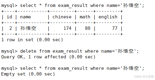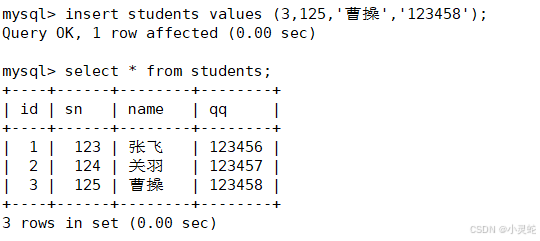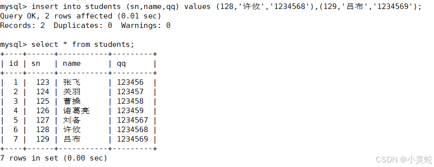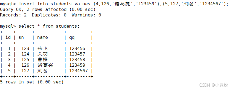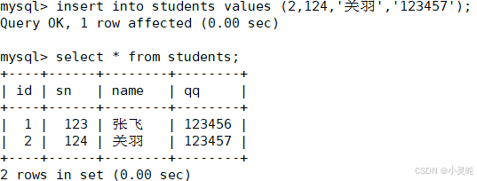 -- 2 row affected: 表中有冲突数据,删除后重新插入