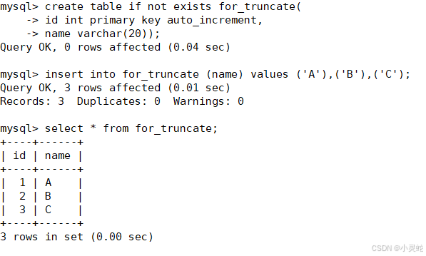 TRUNCATE [TABLE] table_name 注意:这个操作慎用