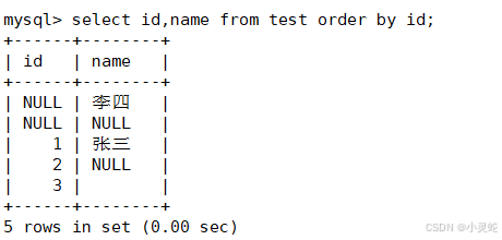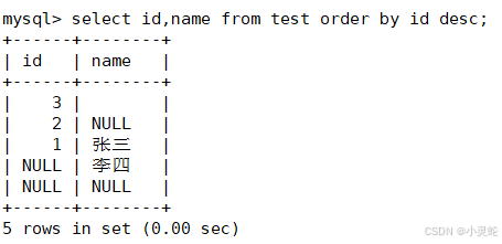 如果有NULL,则NULL视作比任何值都小,升序出现在最上面,降序出现在最下面。