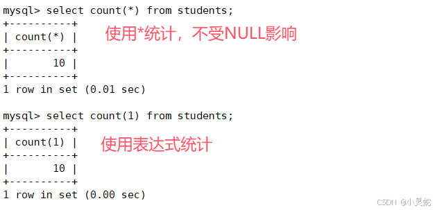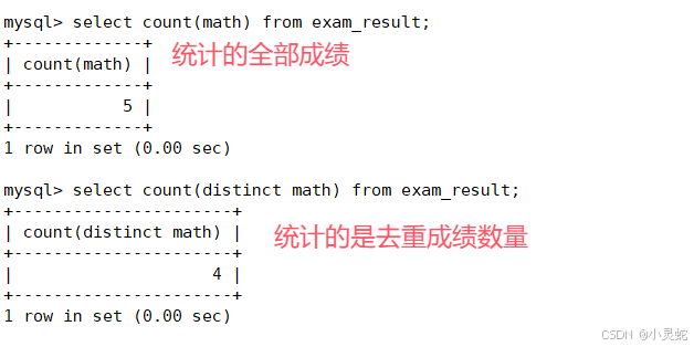 COUNT([DISTINCT] expr) | 返回查询到的数据的 数量 |