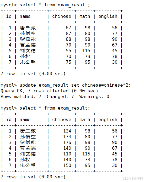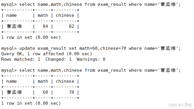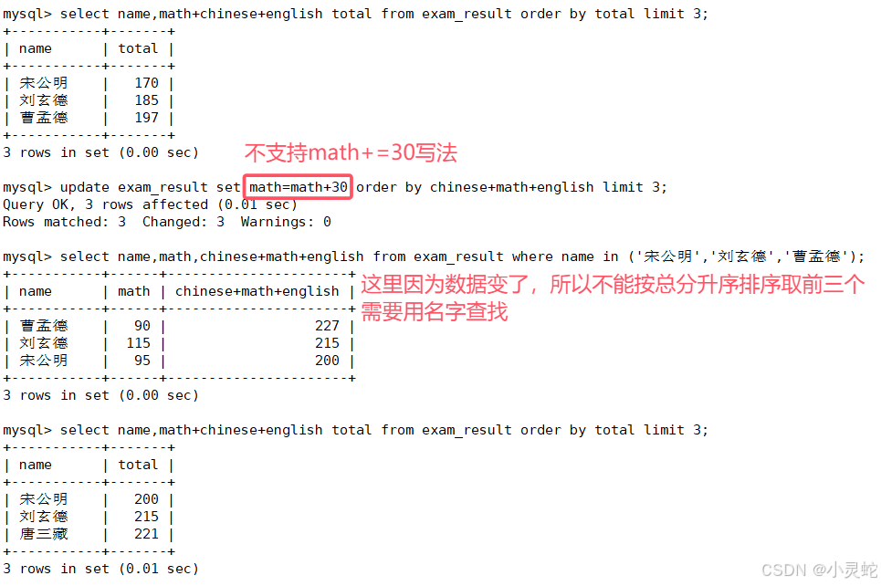 [WHERE ...] [ORDER BY ...] [LIMIT ...] 对查询到的结果进行列值更新。意思就是先进行查询,再进行列值更新。