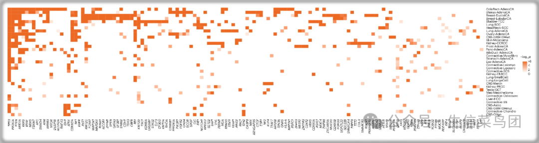 Fig. 3: Heatmap of candidate cancer driver genes identified in at least two different cancer types.