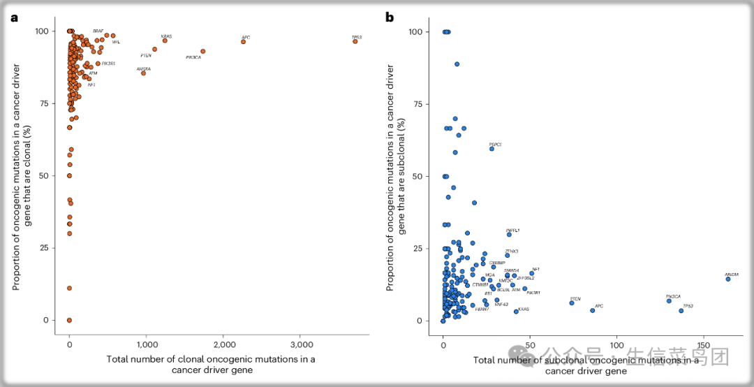 Fig. 6: Distribution of clonal and subclonal oncogenic mutations in candidate cancer driver genes.