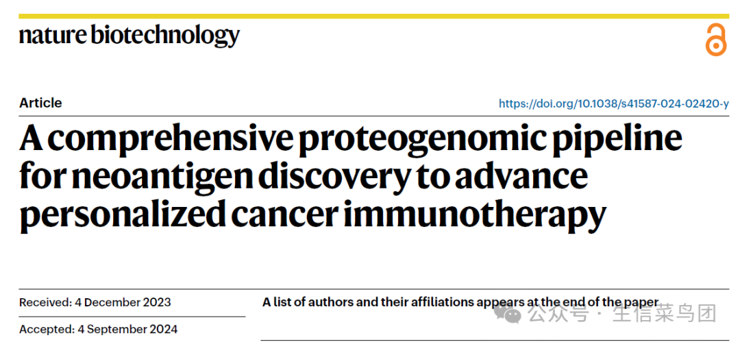 Title | A comprehensive proteogenomic pipeline for neoantigen discovery to advance personalized cancer immunotherapy |