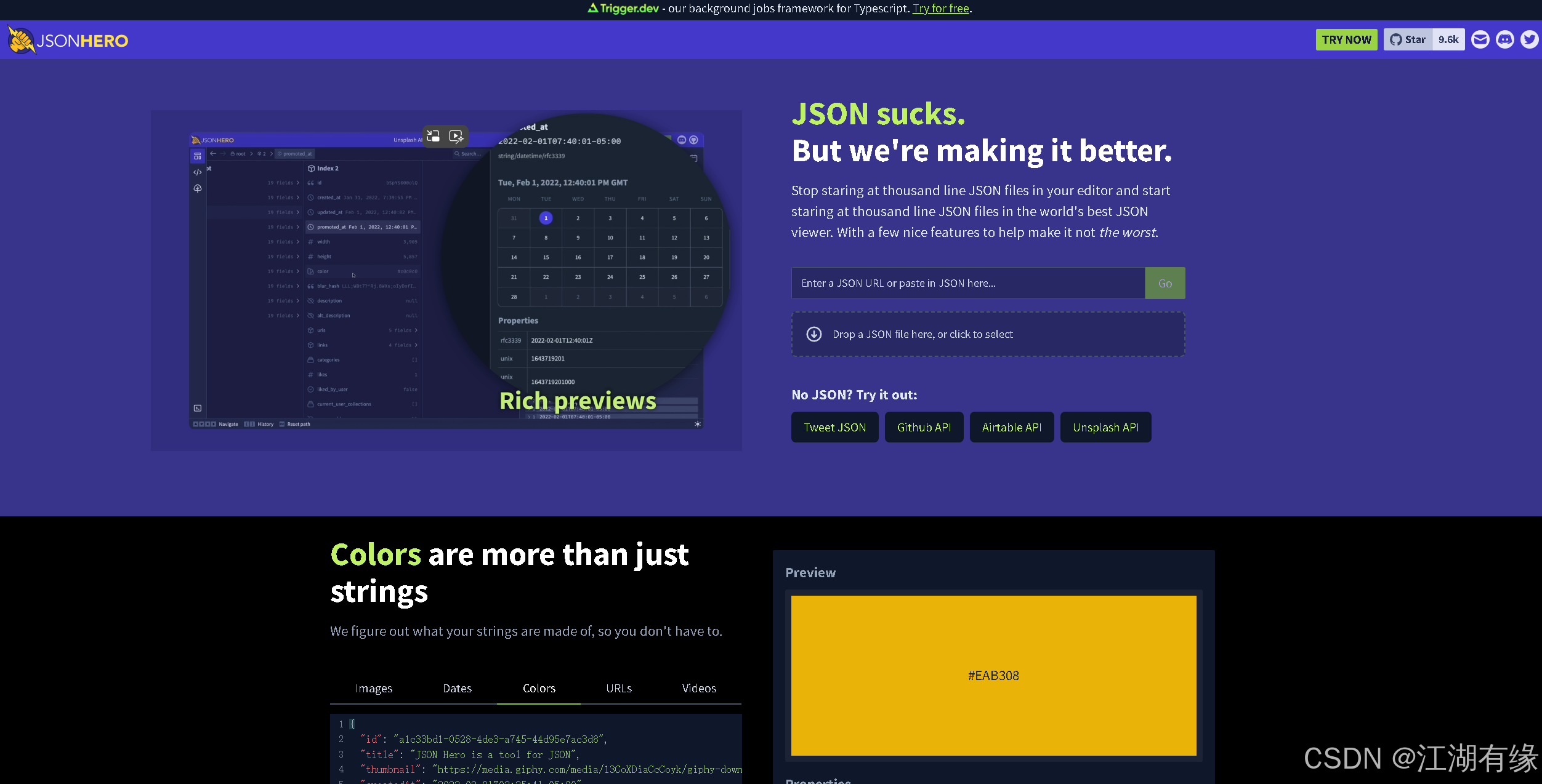 JSON Hero是由 Trigger.dev 团队开发和维护的一款强大的 JSON 查看和编辑工具,提供了一个美观且功能丰富的用户界面。