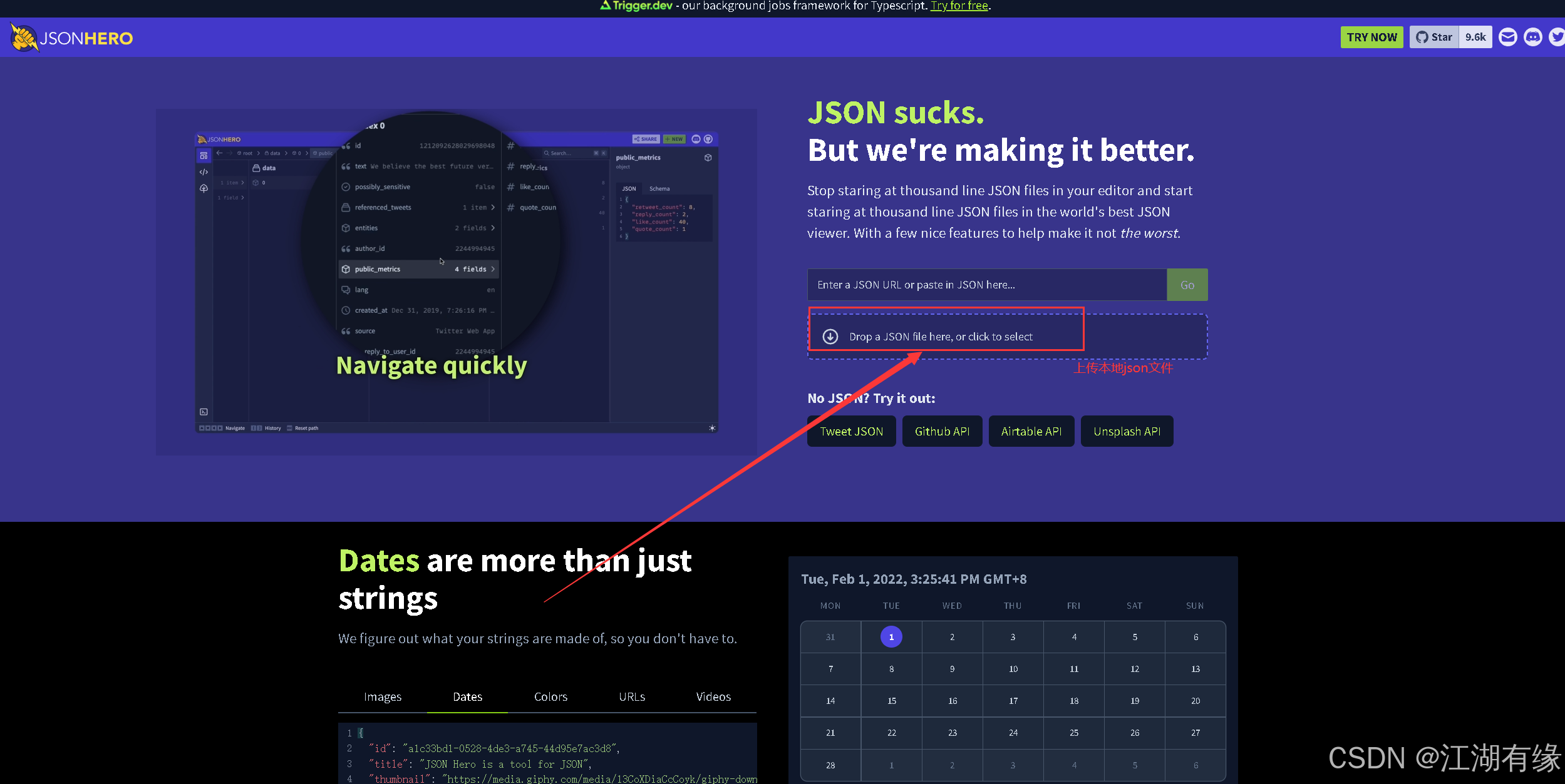 我们使用一个本地的测试json文件是,上传到JSON Hero。
