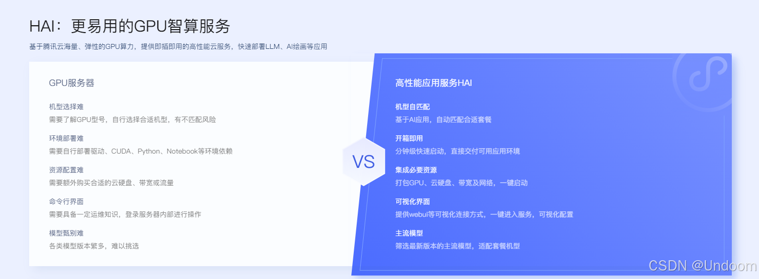 近年来,随着深度学习的爆炸式发展,AI 模型训练与推理对计算资源的需求大幅增长。传统的 GPU 本地化方案不仅昂贵且扩展性差,无法满足动态需求。腾讯云推出的 HAI 智算服务,以灵活的云端 GPU 服务和高性价比的特性,成为开发者和企业部署高性能 AI 应用的理想选择。