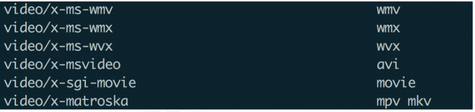 这里记录了大量的文件后缀和mime类型,当客户端请求一个文件时,如果后缀在这个列表里,那么apache就返回对应的content-type给浏览器.如果不在列表,apache不会返回content-type给浏览器,而直接文件内容,由浏览器自动处理。
