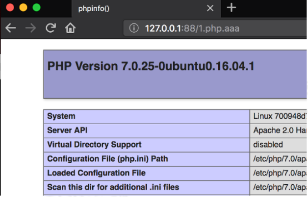 apt-get install libapache2-mod-php7.0Apache文件解析漏洞就发生在Module结合方法上,也就是我们之前配置apt-get install libapache2-mod-php7.0