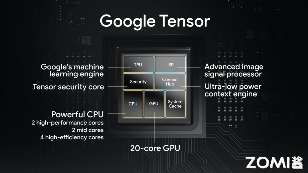 在最新的 Tensor G3 芯片中,我们对每个关键的系统组件都进行了升级,以便更好地支持设备上的生成式 AI 技术。这包括最新型号的 ARM 中央处理器、性能更强的图形处理器、全新的图像信号处理器和图像数字信号处理器,以及我们最新研发的,专门为运行谷歌的神经网络模型而量身打造的 TPU。”