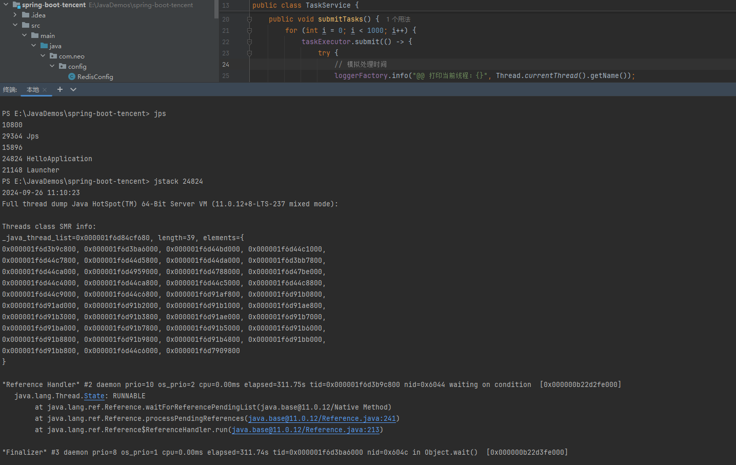 我们也可以通过JPS和Jstack命令来查看堆栈信息的情况。