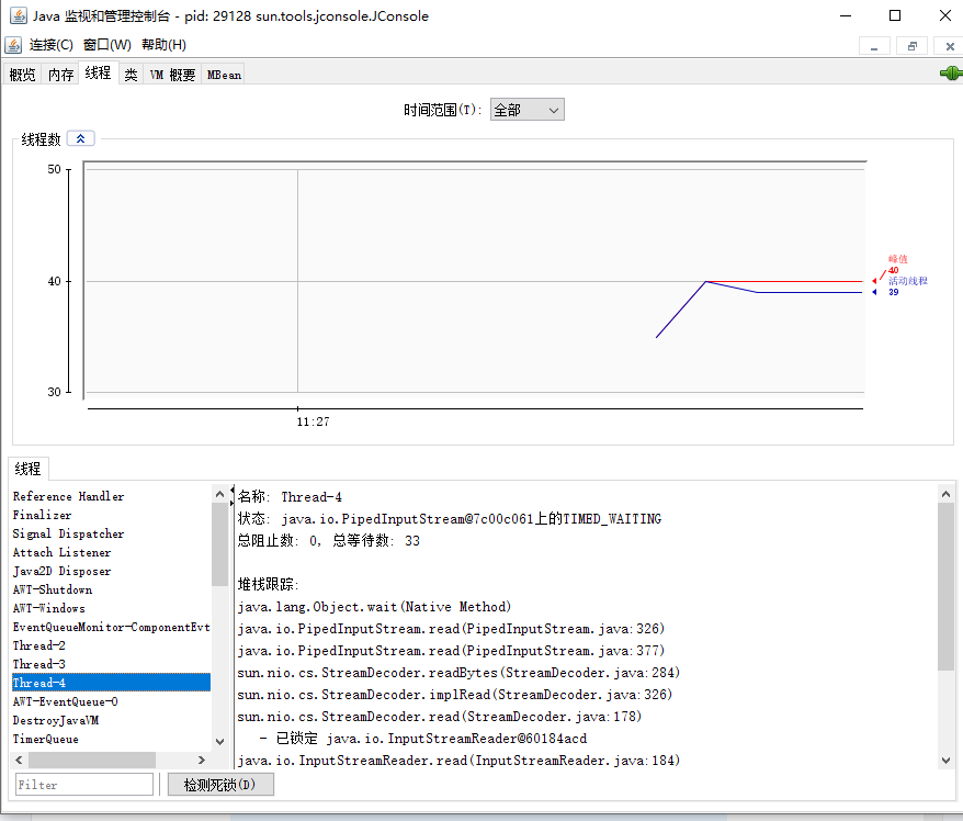 验证一下效果:我们可以看到系统是没有出现错误的,线程也一直被消费。